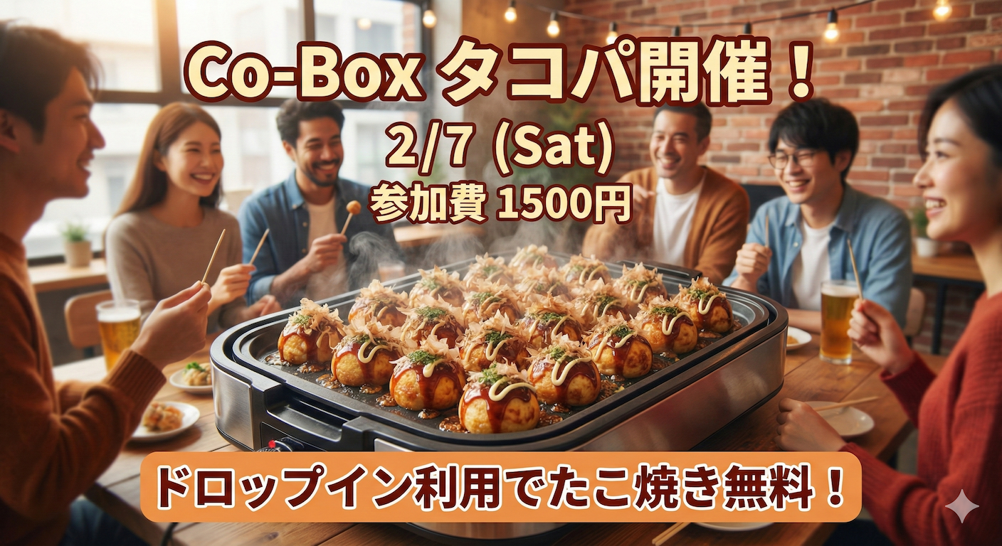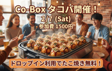 なんと、イベント当日にCo-Boxを「ドロップイン(一時利用)」でご利用いただいた方は、そのまま無料でタコパにご参加いただけます!